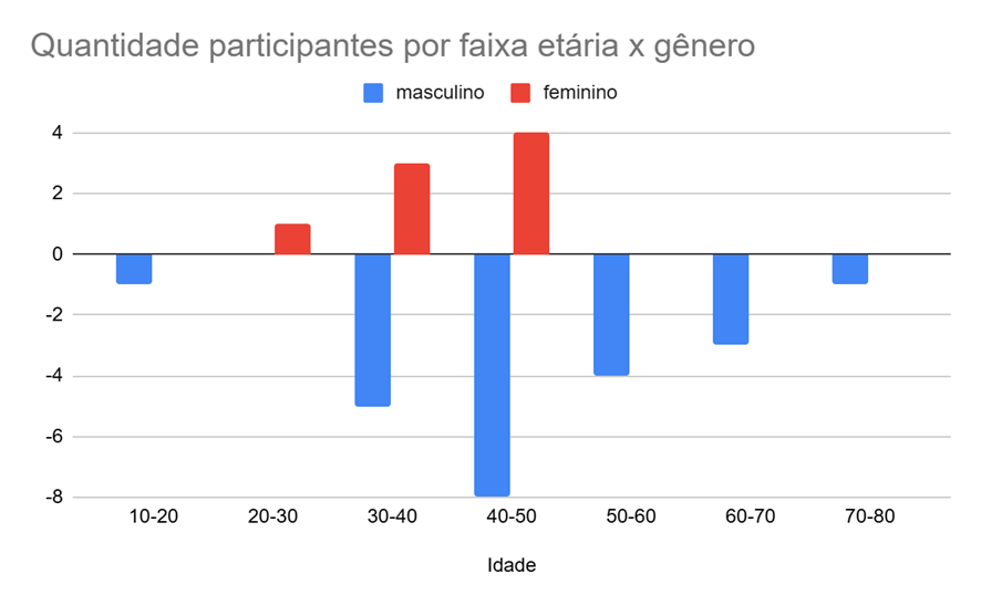 Figura 16. Gênero e faixa etária dos participantes do Curso de manejo de SAF avançado ministrado na Apta Regional de Pindamonhangaba (22 e 23/2/2025).